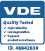 公司产品通过欧洲IEC标准认证,并通过全球多家权威检测机构认证,其中包括,TUV南德、TUV莱茵、UL、CAS、CEC、JET、MCS、KS、TIS、BIS以及中国的CQC认证等。