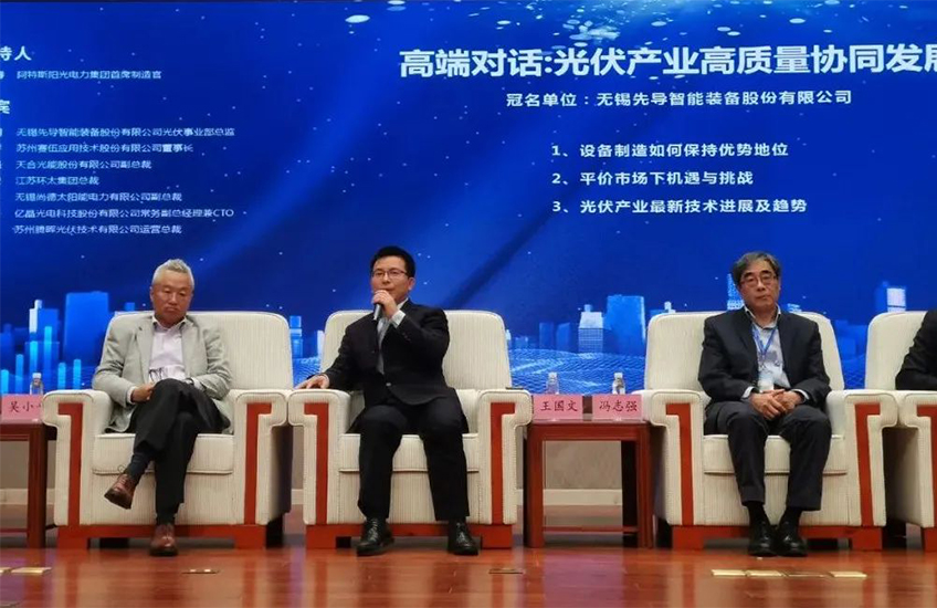 同期举办的 “光伏产业高质量协同发展”高端对话环节,腾晖光伏运营总裁王国文应邀出席,并就平价市场下机遇与挑战进行了分享。