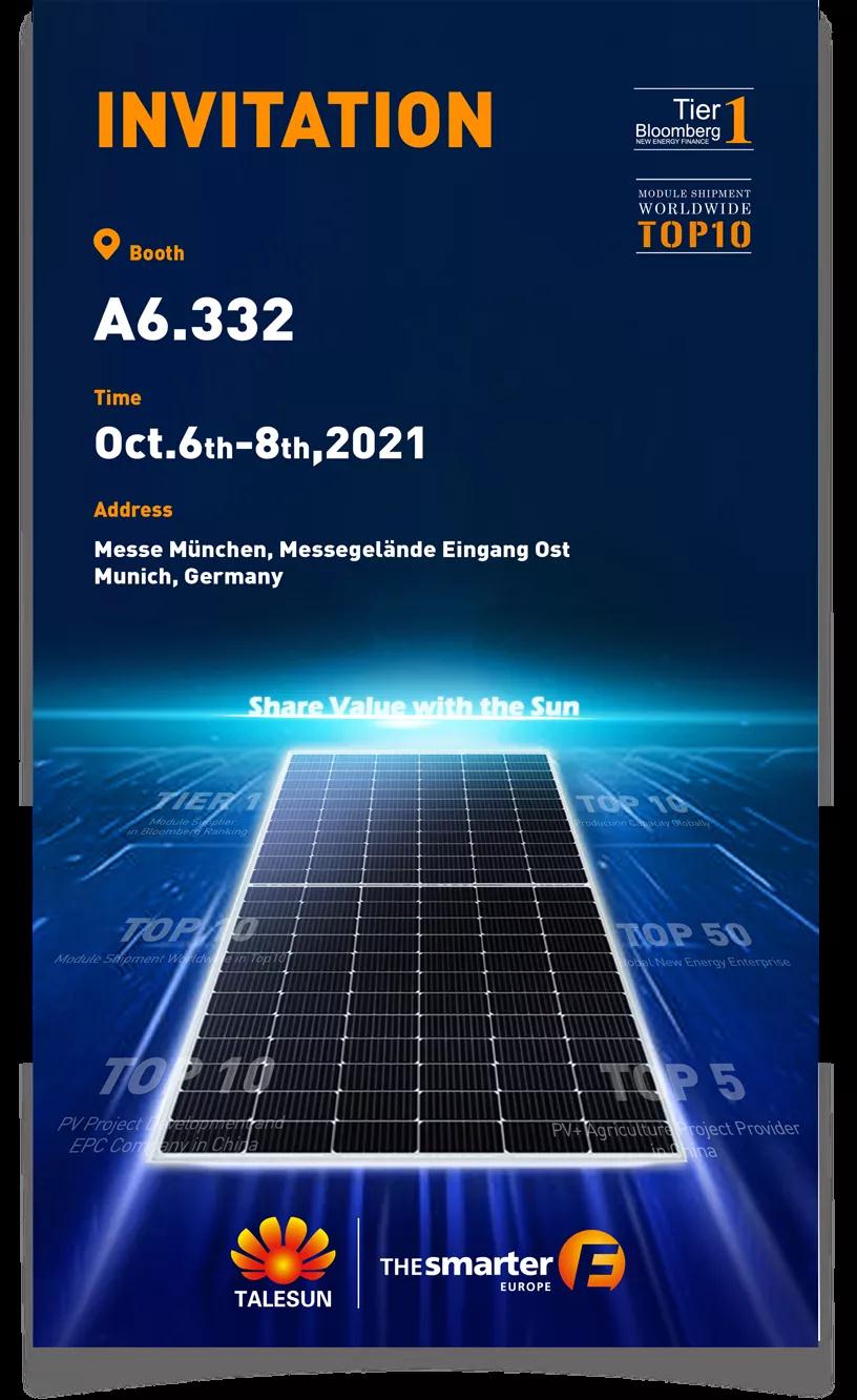2021年欧洲智慧能源展将于10月6-8日在德国慕尼黑举行。腾晖光伏将携系列高效光伏组件亮相欧洲智慧能源展,欢迎莅临我们的展台A6. 332。