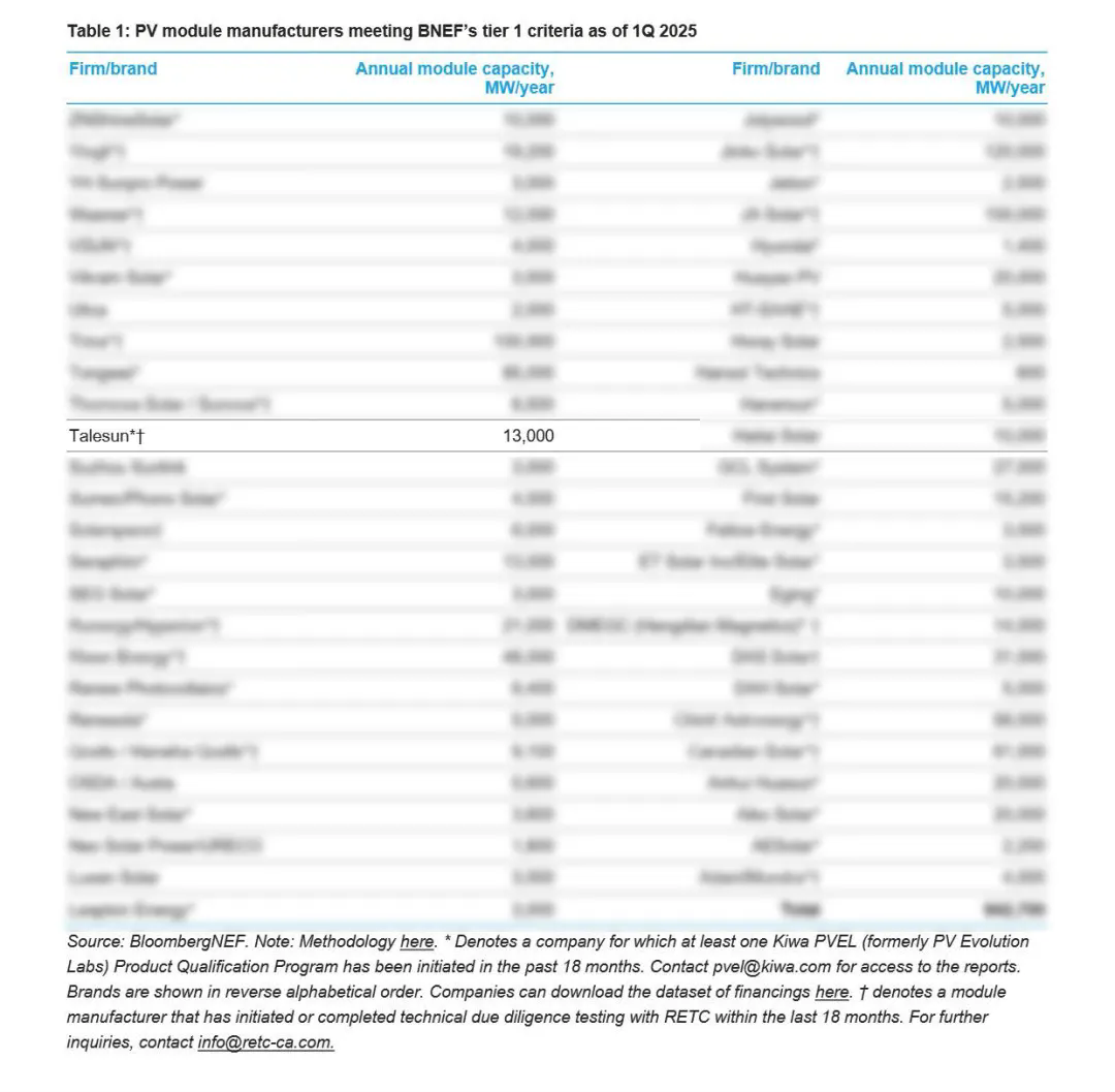 近日,全球知名研究机构彭博新能源财经(BNEF)发布了2025年第一季度Tier1全球一级组件制造厂商榜单,腾晖光伏凭借卓越的技术创新能力、稳健的财务表现及全球市场影响力成功入选该榜单。