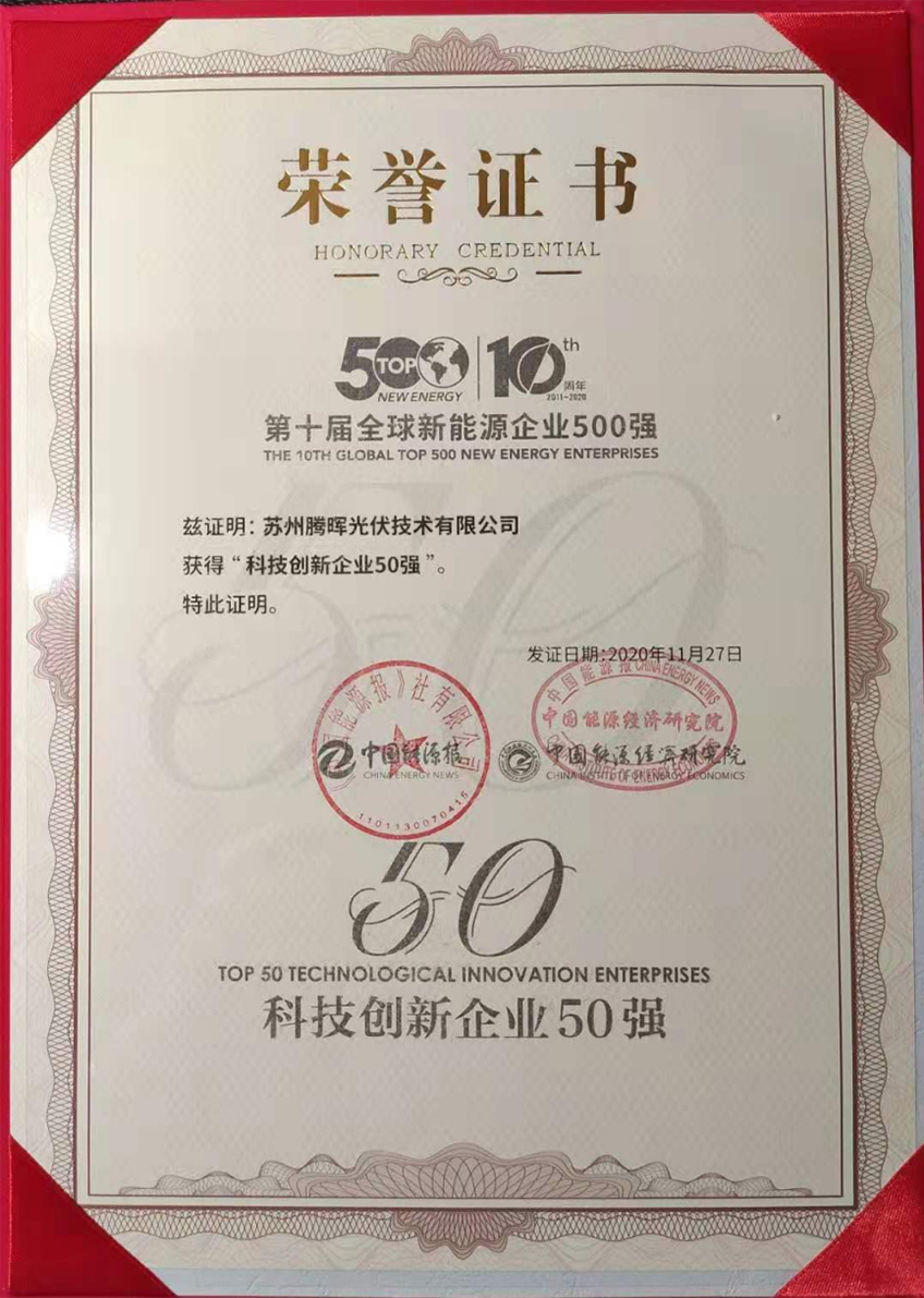 腾晖光伏实力入选“新能源科技创新企业50强”!