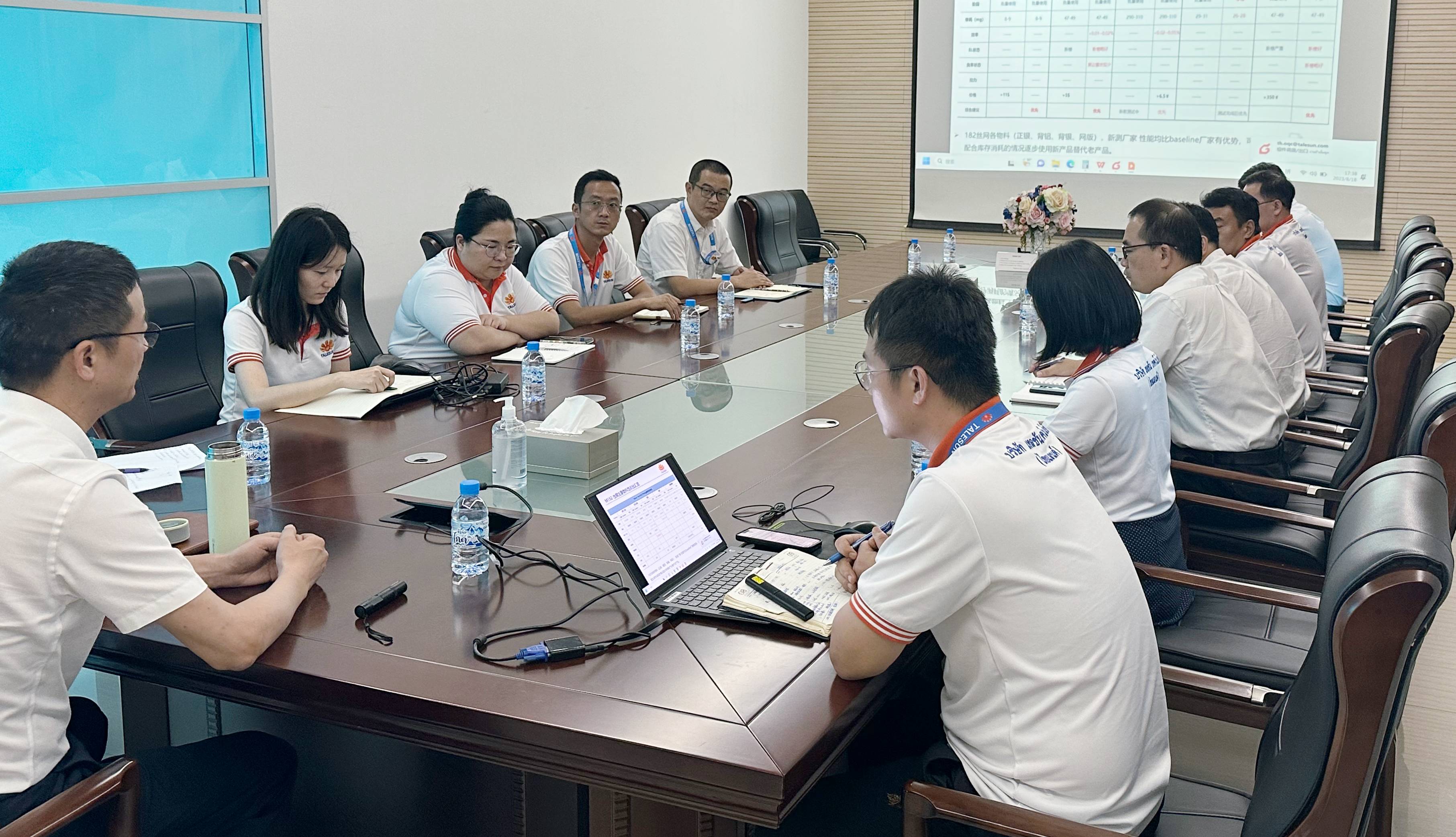 当地时间 2023 年 8 月 17 日下午,苏州腾晖光伏技术有限公司(以下简称“腾晖光伏”)常务副总裁张金春先生到访腾晖泰国生产基地。在泰国基地总经理方 亮先生的陪同下,实地参观了电池/组件车间,现场详细听取工厂生产运营及技改 项目进度汇报。 泰国基地对近期电池/组件加工成本进行了分析汇报,张金春先生对泰国基地 的发展和生产运营给与了高度肯定,并代表董事长表达了对中方驻外人员的辛苦 付出表示感谢,同时提出要求在保证产品质量产能前提下,成立专项改善小组持 续降本增效,开源节流,不断加强泰方员工管理梯队建设,培养双语基层人才, 并加速新增组件产能的项目推进工作。