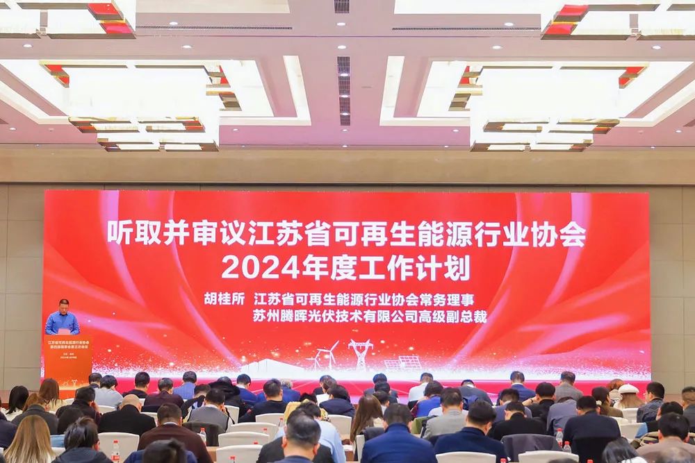 2024年1月19日,江苏省可再生能源行业协会第四届理事会第三次会议在南京隆重举行。作为可再生能源领域的领军企业之一,腾晖光伏高级副总裁胡桂所应邀出席此次会议。期间受协会委托代表协会宣读了《江苏省可再生能源行业协会2024年度工作计划》,并与协会各理事共同探讨了可再生能源的未来发展方向。