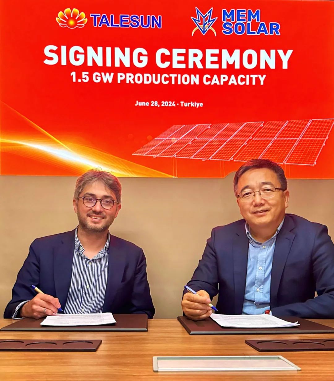 腾晖光伏全球营销高级副总裁邢雅宾先生在签约现场表示:“MEM公司一直以来都是腾晖光伏的重要合作伙伴之一, 2022年我们就联手在土耳其南部的卡赫拉曼马拉什省合作建设了1GW年产能的光伏组件生产线,此次双方1.5GW的光伏项目合作备忘录的签署,是腾晖在全球化战略中的又一重要布局。未来,我们将继续深化产业合作,共同推动光伏行业的创新和发展。”