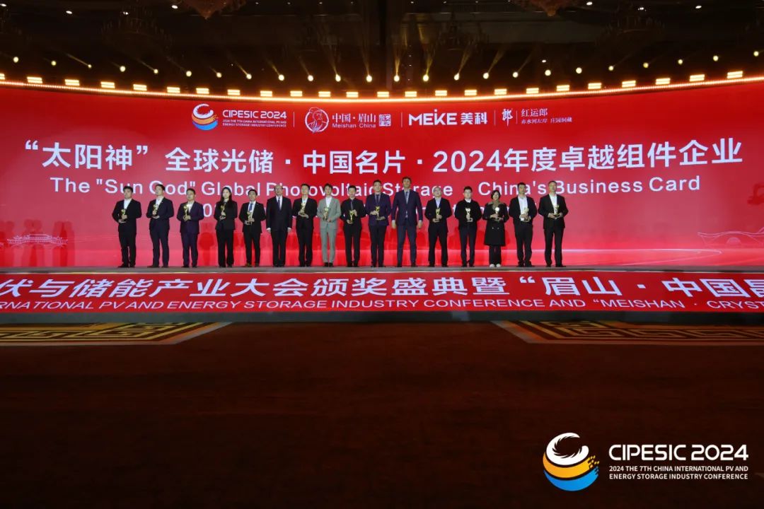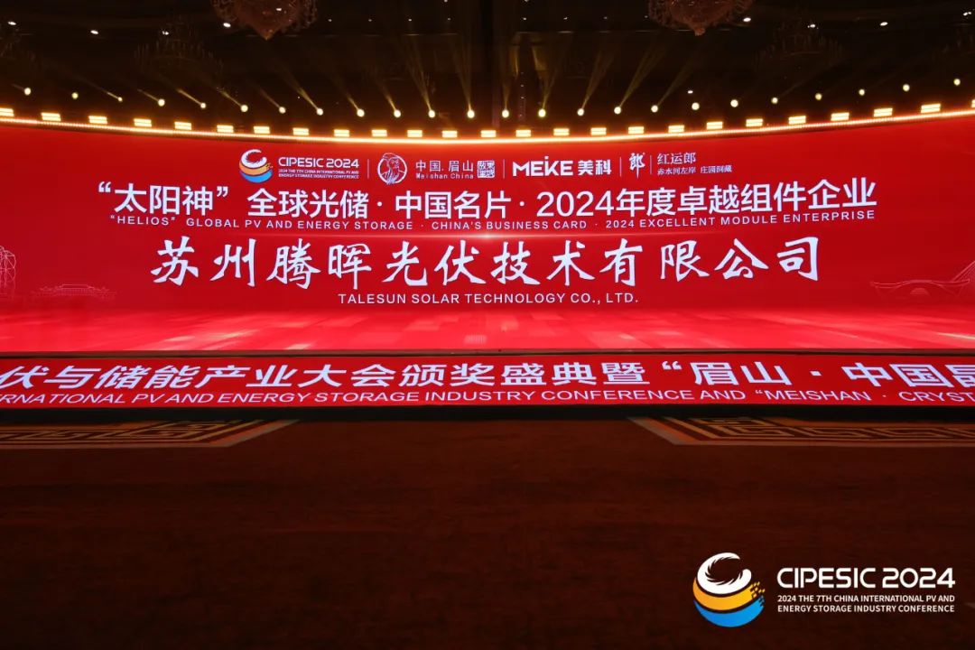 在大会期间,腾晖光伏凭借其出色的表现,荣获了“太阳神”全球光储·中国名片·2024年度卓越组件企业奖。这一殊荣不仅彰显了腾晖光伏在光伏组件领域的领先地位,更体现了其在推动全球能源转型和实现“双碳”目标中的卓越贡献。