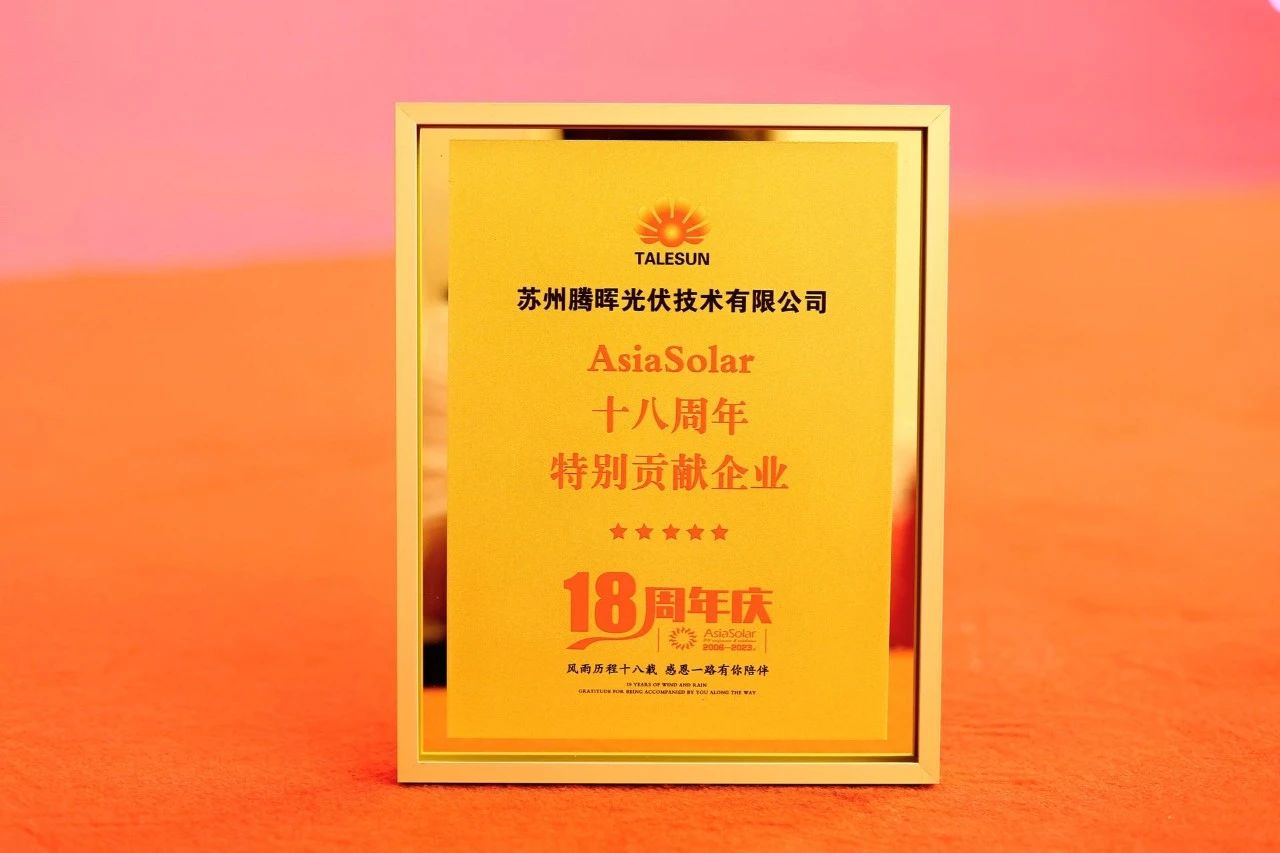腾晖光伏荣获“2023中国光伏组件最具影响力企业”、 “AsiaSolar 18周年特别贡献企业”两项殊荣