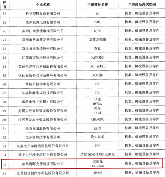 近日,江苏省商贸局公布2020-2022年度江苏省重点培育和发展的国际知名品牌名单,我市20家企业获评,苏州腾晖光伏技术有限公司成功入选。