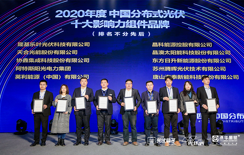 腾晖光伏获评“2020年度中国分布式光伏十大影响力组件品牌”