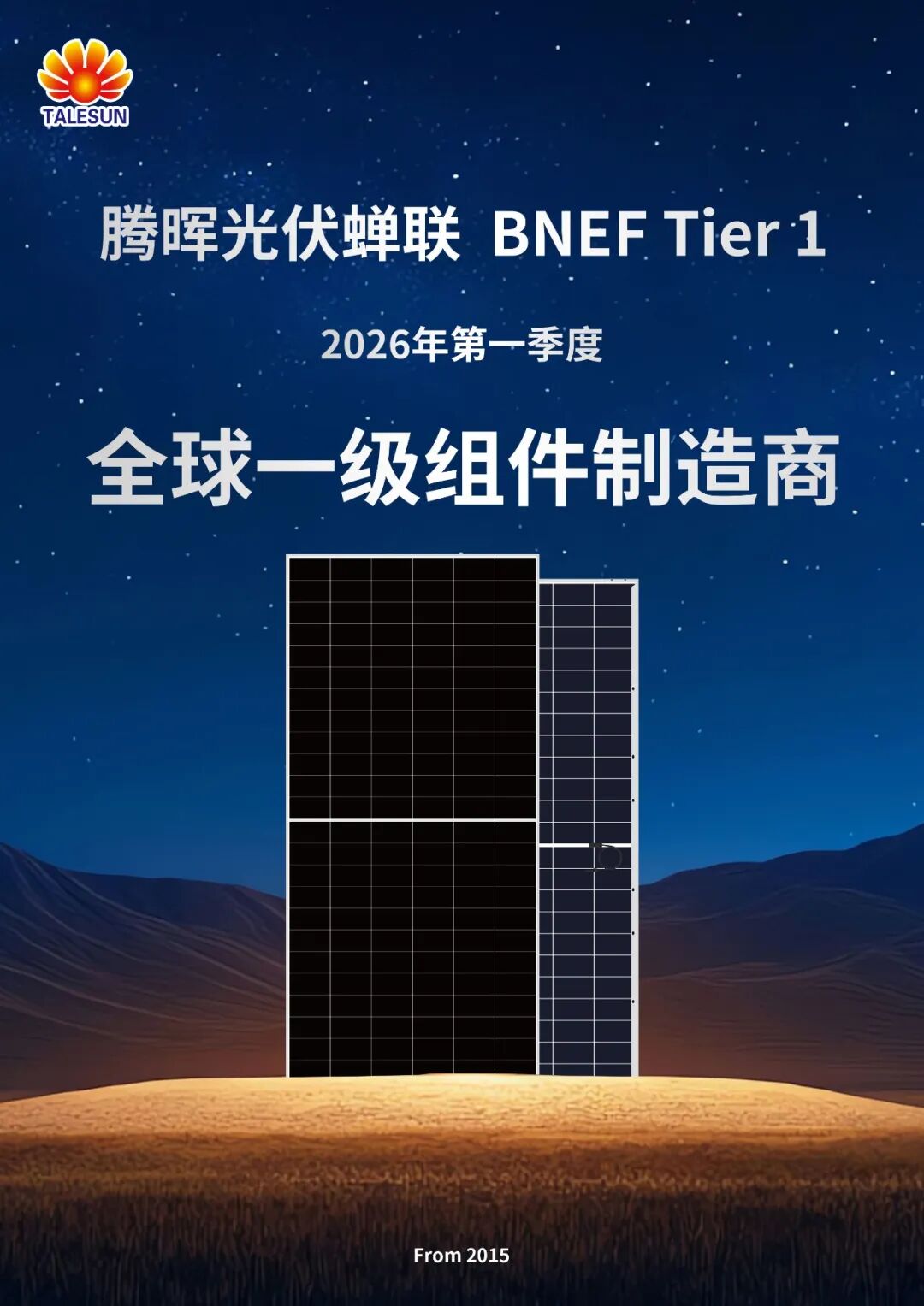 腾晖光伏蝉联BNEF 2026 Q1 Tier 1榜单,彰显卓越实力