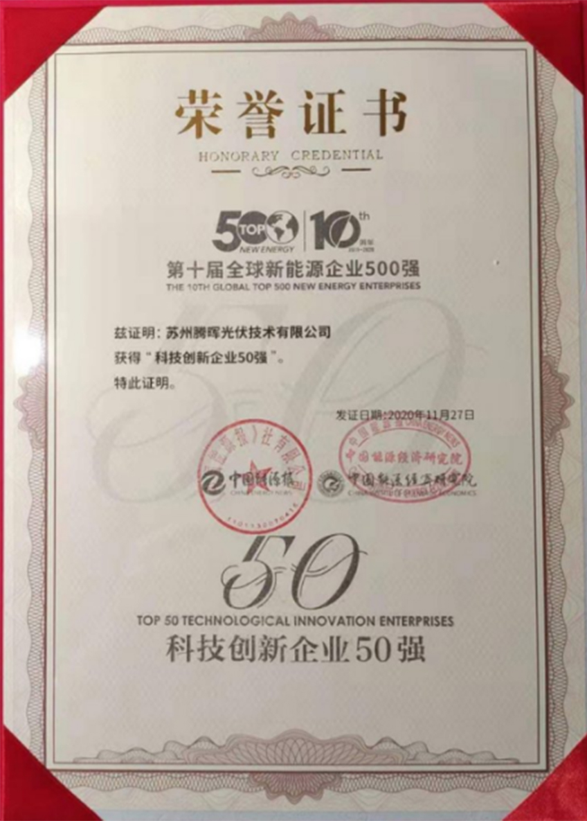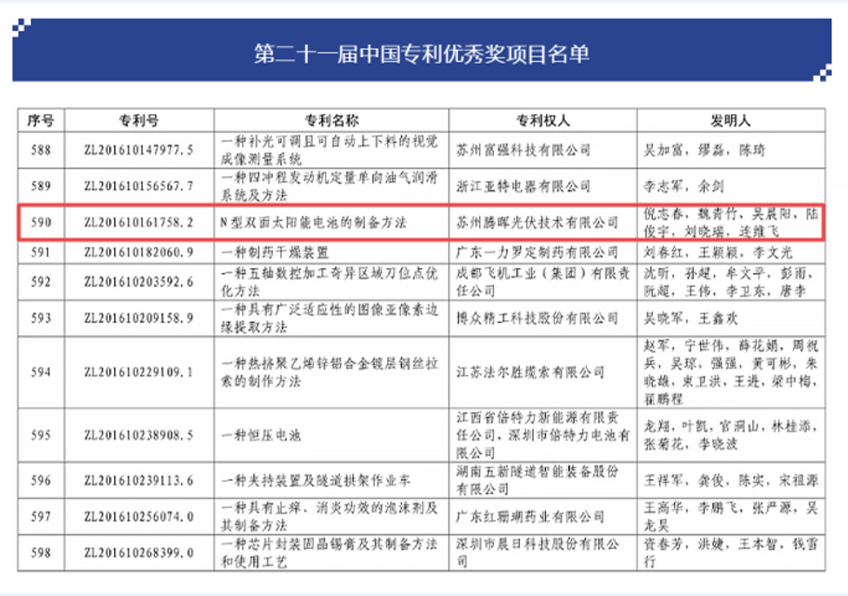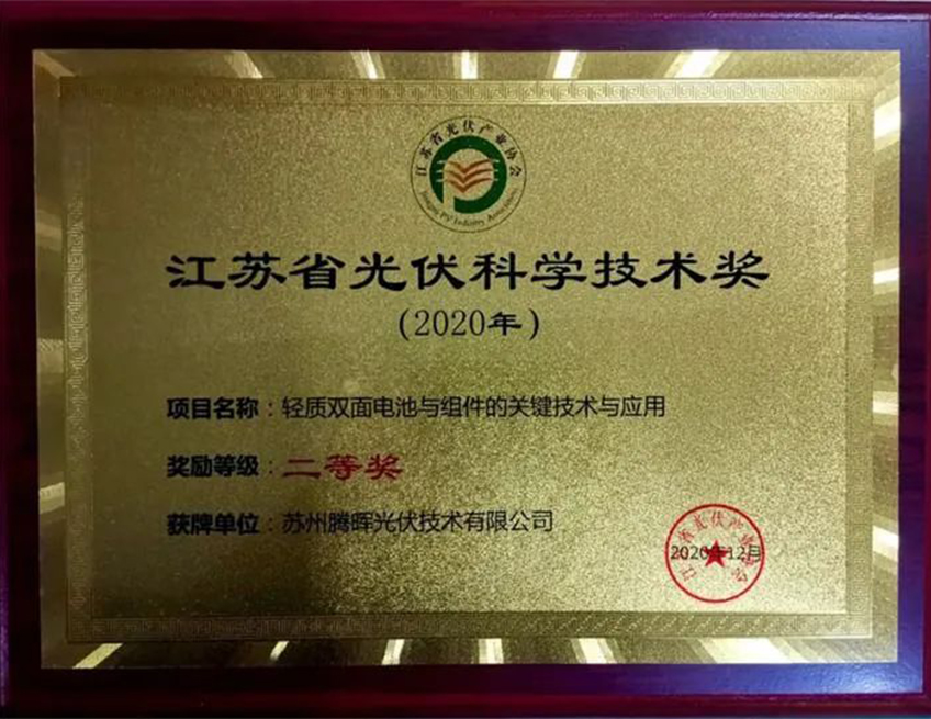 而聚焦技术创新,科技引领进步的发展宗旨,也让腾晖光伏获得了国家及政府部门的褒奖,被列入“工业互联网看苏州”十大创新平台名单,荣获“中国专利奖优秀奖”,“2020年度江苏省光伏产业协会光伏科学技术奖二等奖”等奖项。