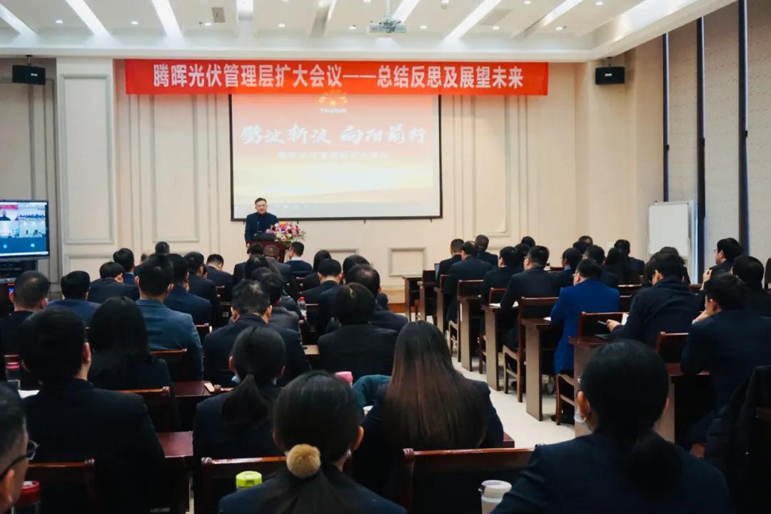 腾晖光伏日前在常熟总部召开管理层扩大会议。腾晖光伏董事长王伟峰、总裁董曙光,以及来自研发、制造、营销、财务、行政等公司所有模块管理人员汇聚一堂,共同总结和反思2021年经营管理中的问题与不足,明确运营管理工作的要求与思路,展望新一年度企业的发展图景。